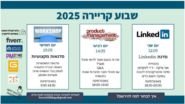 -הערת חובה* להרצאה יש להגיע עם פרופיל לינקדאין פתוח ומחשב נייד