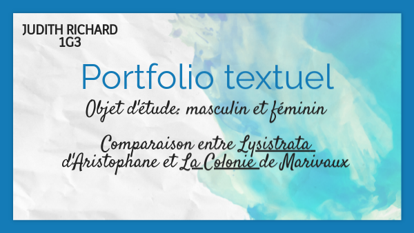 Objet d'étude: masculin et féminin Comparaison entre Lysistrata d'Aristophane et La Colonie de Marivaux