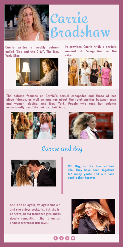 The column focuses on Carrie´s sexual escapades and those of her close friends, as well as musings abaut the relationships between men and women, dating, and New York. People who read her column occasionally describe her as their icon,