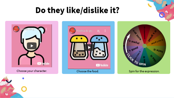 Story Cubes - likes/dislikes, food/people