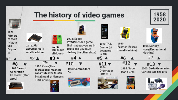 1978: Space Invaders(video game that is about you are in space and you must destroy the other ships)