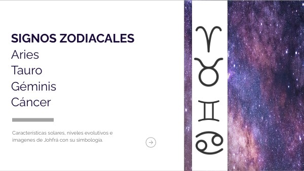 Vamos a iniciar el recorrido por los signos zodiacales. En esta unidad nos enfocaremos en las cualidades, los conceptos, simbología y esencia de los doce signos desde la mirada de la astrología psicológica, evolutiva y espiritual. Para hacer el recorrido más didáctico y experiencial (aunque sea a través de este medio virtual), les propongo algunos recursos con el objetivo de impregnarnos de la energía de cada signo y ir un poco más allá del entendimiento intelectual y la teoría explicativa. Así que en el material de cada signo van a encontrar: 1) Introducción a la energía del signo 2) Una meditación/visualización guiada. 3) La ilustración astrológica de Johfra (leer quién es en la hoja siguiente) y simbología correspondientes. 4) La descripción de la influencia del planeta regente. 5) Propiedades extras de cada signo. 6) Ejercicios prácticos y creativos.
