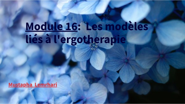 • Centrée sur l’occupation et sur le client. • Hétérarchie : tous les éléments sont inter-reliés et sont sur un pied d’égalité • Émergence : On peut intervenir sur n’importe quelle pièce du modèle et tous les autres éléments vont bouger. • Dynamique : tout ça bouge. Etre occupationnel (la personne) : 1. La volition : Première de ces composants, représente la motivation d'une personne à agir activement sur son environnement. Ce concept fait référence à notre nature biologique qui nous pousse constamment à explorer notre millieu : • Nos intérêts (Est-ce que j’aime ça ?): compennent tout ce que la personne trouve agréable et satisfaisant (les sports, les arts...) • Nos valeurs (Est-ce important pour moi) : englobent les éléments importants et significatifs pour la personne : - Convictions personnelles (croyance de ce qui est bon ou mauvais). - Ce qui est important pour la personne. - Influencé par notre culture et nos expériences. • Déterminants personnels (Est-ce que je me trouve bon ?) : ce que la personne pense et connait au sujet de so son efficacité et de ses capacités.