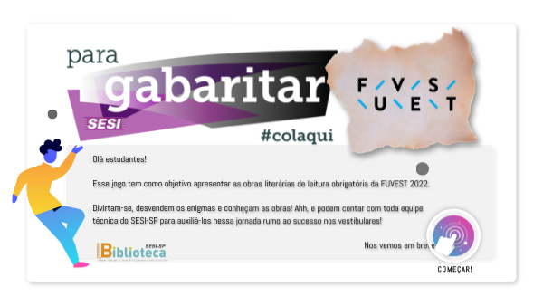 Olá estudantes! Esse jogo tem como objetivo apresentar as obras literárias de leitura obrigatória da FUVEST 2022. Divirtam-se, desvendem os enigmas e conheçam as obras! Ahh, e podem contar com toda equipe técnica do SESI-SP para auxiliá-los nessa jornada rumo ao sucesso nos vestibulares! Nos vemos em breve!