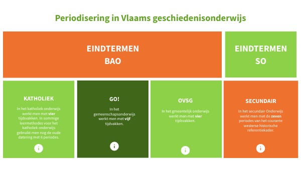 In het secundair Onderwijs werkt men met de zeven periodes van het courante westerse historische referentiekader.