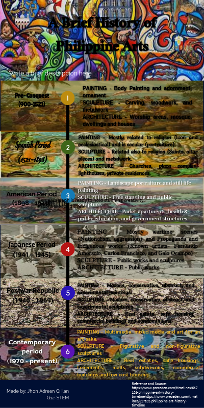 Reference and Source: https://www.preceden.com/timelines/617101-philippine-art-history-timelinehttps://www.preceden.com/timelines/617101-philippine-art-history-timeline