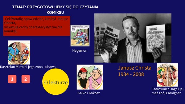 Cel:Potrafię opowiedziec, kim był Janusz Christa, wskazuję cechy charakterystyczne dla komiksu