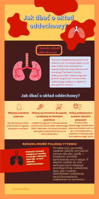 Choroby układu oddechowego są bardzo łatwo przenoszone przez innych, nie pal i unikaj przebywania w przestrzeni w której jest dużo dymu papierosowego i pyłów