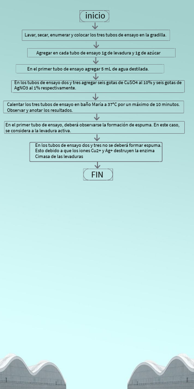 En los tubos de ensayo dos y tres no se deberá formar espuma. Esto debido a que los iones Cu2+ y Ag+ destruyen la enzima Cimasa de las levaduras
