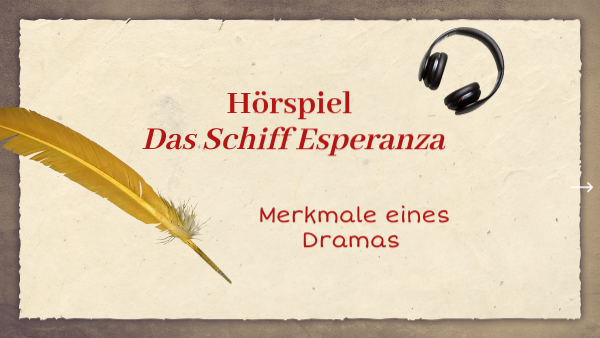 Der traditionelle Aufbau eines Dramas lässt sich auch auf das Hörspiel Das Schiff Esperanza übertragen. So erfüllen die Blenden 1 bis 3 die Merkmale einer Exposition (Einführung). In einer Exposition werden häufig folgende Inhalte thematisiert: