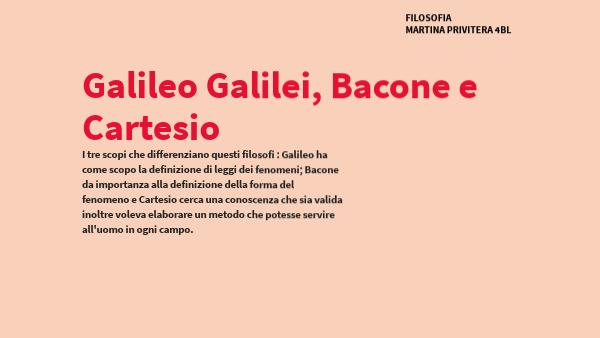 Galileo, Cartesio e Bacone sono considerati come le tre figure fondamentali per lo sviluppo della Rivoluzione scientifica; nonostante questo dato di fatto,i tre filosofi presentano numerose analogie e differenze riguardo il loro pensiero.