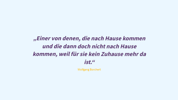 „Einer von denen, die nach Hause kommen und die dann doch nicht nach Hause kommen, weil für sie kein Zuhause mehr da ist.“
