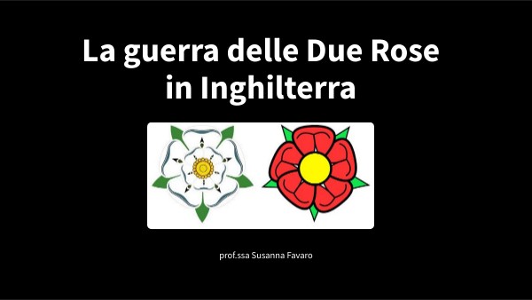 Come hai potuto verificare nella lezione precedente, a vincere la secolare Guerra dei Cent'Anni fu la Francia. L'Inghilterra, invece, ne uscì sconfitta. Aver perso molti feudi francesi da tempo inglesi provocò lo scontento dei baroni (nobili, feudatari) inglesi che si ribellarono alla monarchia. Ne nacque una guerra civile tra le due famiglie degli YORK e dei LANCASTER (identificati dai loro stemmi araldici = nobiliari che riproducevano una rosa bianca e una rosa rossa; v. immagine di copertina). Si tratta sostanzialmente di una guerra dinastica. Tale guerra è nota come la Guerra delle Due Rose (1455-1485).