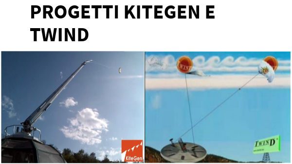 Il KiteGen è un progetto italiano. E' una tecnologia innovativa che libera nell’aria un aquilone legato a braccia meccaniche, ma lasciato libero di orientarsi in base alla direzione del vento; L’altezza che offre le maggiori prestazioni è a 800 metri ed è a questa distanza che entra in azione Kitegen che provvede a sfruttare le correnti molto meglio delle tradizionali pale eoliche; Il progetto prevede 2 filoni principali di sviluppo: il KiteGen Stem e il KiteGen Carousel.
