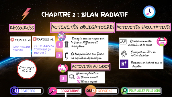 Réaliser une carte mentale sur le cours Expliquer en 180 s la notion d'albédo Préparer un kahoot sur ce chapitre