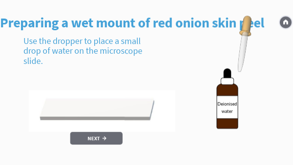 Click the forceps peel a thin layer of cells from the onion slice as shown in the diagram.