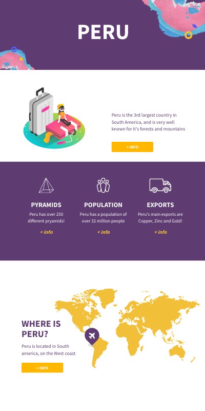 Peru is the 3rd largest country in South America, and is very well known for it's forests and mountains