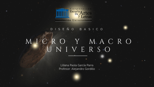- Es así como en el arte se suele usar esta figuro de micro-universo para interpretar imágenes e información científica básica, explorar el propio cuerpo y el ambiente cercano a él, y por último transferir sensaciones y sentimientos a imágenes visuales, movimientos o sonidos, usando la inspiración del micro-universo.
