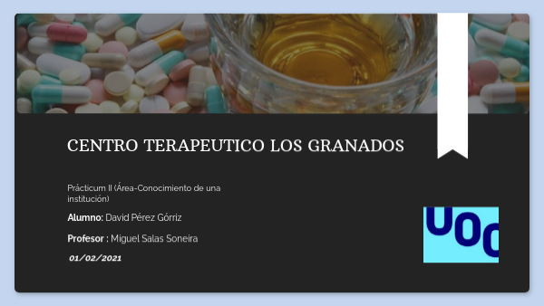 Nuestra figura profesional ejerce una función primordial en la consecución de los objetivos de este tipo de centros: conseguir la deshabituación, rehabilitación e inserción. Para ello, aspectos como la interdisciplinariedad y el trabajo en red son esenciales en centros como el propuesto. A modo de cierre, no querría despedir esta presentación sin referenciar la importancia de la prevención en materia de adicciones y exclusión social, destacando la adolescencia como iniciación al consumo. Una situación que no es responsabilidad simplemente de las profesiones que nos rodean, más bien es una responsabilidad de toda la sociedad en si misma.
