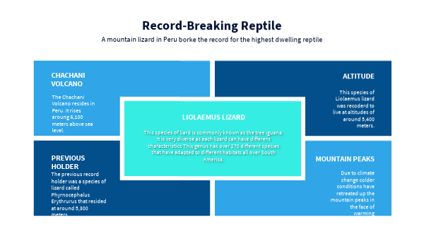 A mountain lizard in Peru borke the record for the highest dwelling reptile