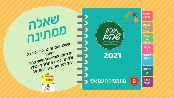שאלה שממתינה לך לפני כל שיעור זה הזמן, לוודא שהנושא ברור ולהתחיל את תהליך הלמידה עוד לפני שהשיעור מתחיל