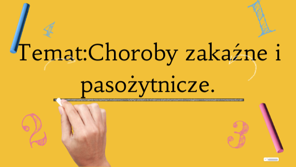 Na dzisiejszej lekcji dowiecie się w jaki sposób można zarazić się chorobami zakaźnymi i pasożytniczymi, jakie są objawy , sposób leczenia. Poznacie również profilaktykę-jak nie zachorować.