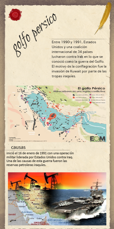 inició el 16 de enero de 1991 con una operación militar liderada por Estados Unidos contra Iraq. Una de las causas de esta guerra fueron las reservas petroleras iraquíes.