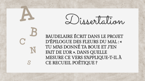 Baudelaire écrit dans le projet d’épilogue des Fleurs du mal : « Tu m’as donné ta boue et j’en fait de l’or ». Dans quelle mesure ce vers s’applique-t-il à ce recueil poétique ?