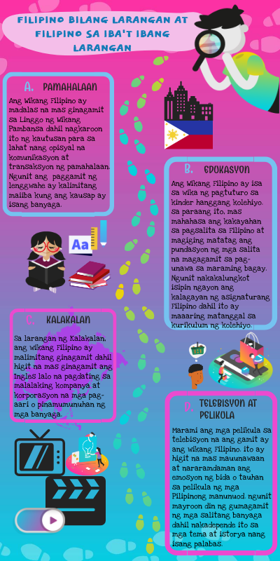 FILIPINO BILANG LARANGAN AT FILIPINO SA IBA'T IBANG LARANGAN