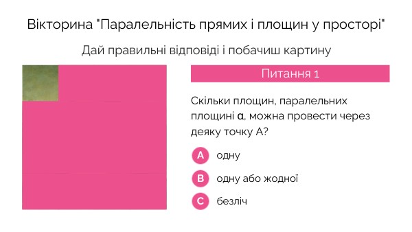 Скільки площин, паралельних площині α, можна провести через деяку точку А?