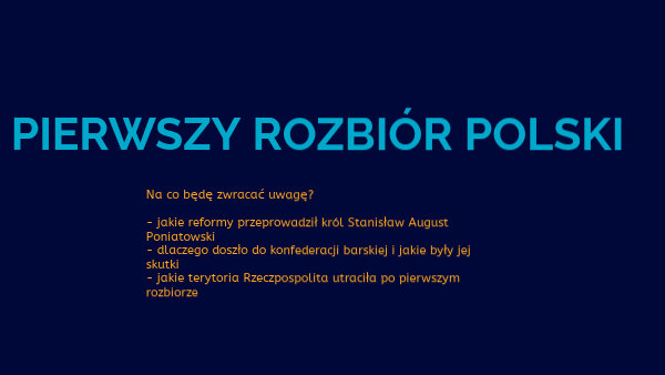 Na co będę zwracać uwagę? - jakie reformy przeprowadził król Stanisław August Poniatowski - dlaczego doszło do konfederacji barskiej i jakie były jej skutki - jakie terytoria Rzeczpospolita utraciła po pierwszym rozbiorze