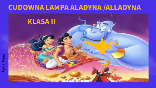 Cudowna lampa Aladyna” to opowieść o zaczarowanej lampie, z ukrytym w niej, spełniającym wszystkie życzenia duchem Dżinem. Jest to jedna z najbardziej znanych baśni z „Księgi Tysiąca i Jednej Nocy”.