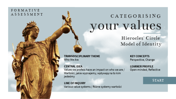 TRANSDISCIPLINARY THEME Who We Are CENTRAL IDEA Values we profess have an impact on who we are / Wartości, jakie wyznajemy, wpływają na to kim jesteśmy LINE OF INQUIRY Various value systems / Różne systemy wartości
