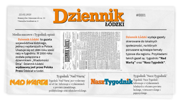 Dziennik Łódzki wydaje gazety skierowane do lokalnych społeczności, na których poruszane są bieżące tematy typowe dla regionu. Przykładami takich gazet są : tygodniki "Nad Wartą" oraz "Nasz Tygodnik".