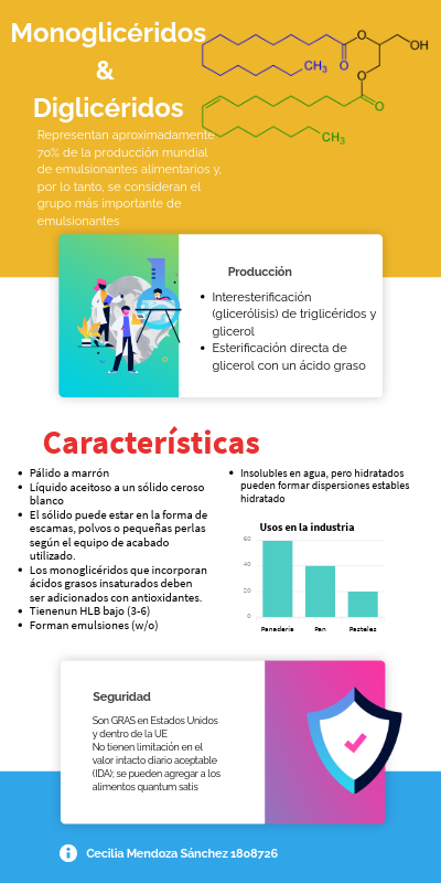 Representan aproximadamente 70% de la producción mundial de emulsionantes alimentarios y, por lo tanto, se consideran el grupo más importante de emulsionantes