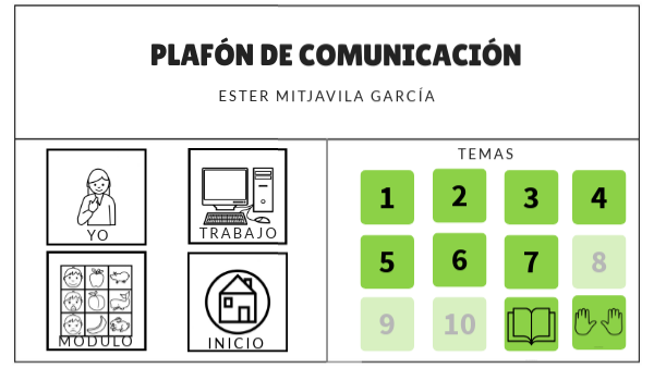 he decidido hacer mi blog como si fuera un plafón de comunicación, inspirándome en la asignatura y en todo lo que he aprendido este año. los símbolos están creados a través de arasaac. también, he tratado de ser lo más fiel posible a los "tips" que hemos ido aprendiendo en clase. Por ejemplo, cada apartado tiene su propio color y los símbolos tienen marco negro para facilitar la comprensión.también, puedes encontrar algunos temas sin activar pero que ya están presentes en el plafón, esto se hace con la intención de respetar la mecanización motora.