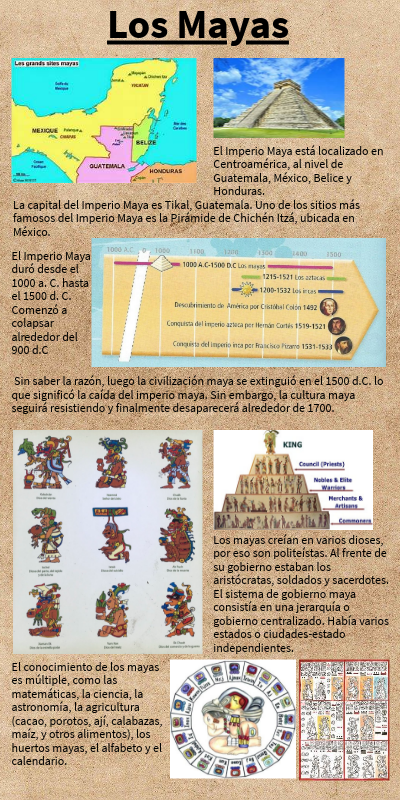 Los mayas creían en varios dioses, por eso son politeístas. Al frente de su gobierno estaban los aristócratas, soldados y sacerdotes. El sistema de gobierno maya consistía en una jerarquía o gobierno centralizado. Había varios estados o ciudades-estado independientes.