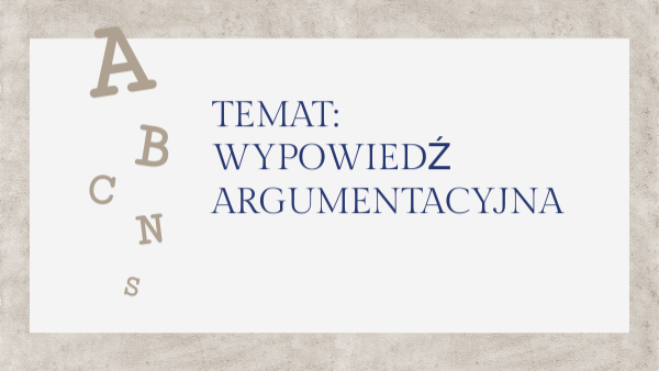 Cel: potrafisz napisać wypowiedź argumentacyjną. K.S.: -formułujesz tezy i hipotezy, -logicznie dobierasz argumenty, - wyciągasz wnioski