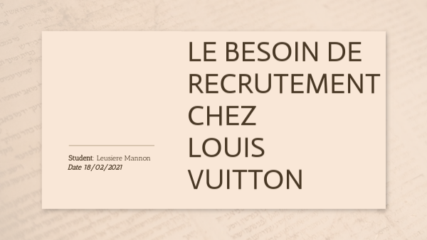 Important de comprendre l'esprit de Louis Vuitton. Louis Vuitton se doit d'être irréprochable. Recherche de personne qui ont les compétences, l'attitude et l'élocution. Le salarié est écouter attentivement, se sent bien et à l'aise avec tout le monde (onboarding)afin de fidéliser le salarié. La Communication est un élement cléf dans cette maison de luxe.
