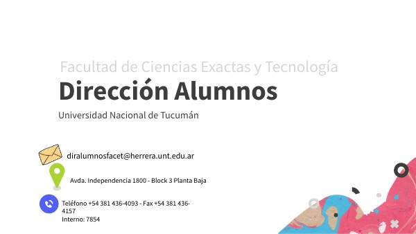 - Desde despachoalumnos_facet@herrera.unt.edu.ar si hay algún inconveniente.