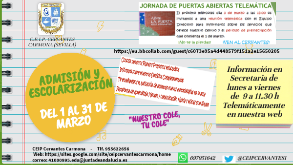 ADMISIÓN Y ESCOLARIZACIÓN CEIP CERVANTES - CARMONA