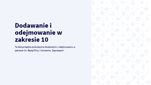 Ta lekcja będzie poświęcona dodawaniu i odejmowaniu w zakresie 10. Będą filmy i ćwiczenia. Zapraszam!