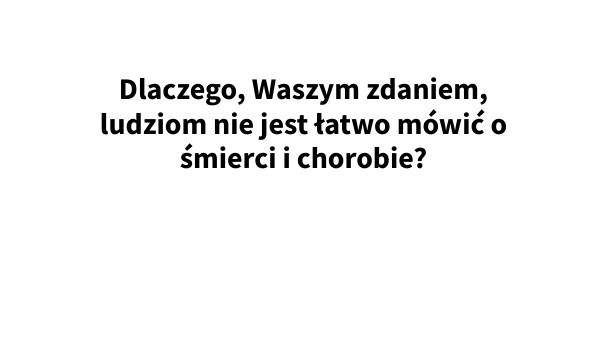 Dlaczego, Waszym zdaniem, ludziom nie jest łatwo mówić o śmierci i chorobie?