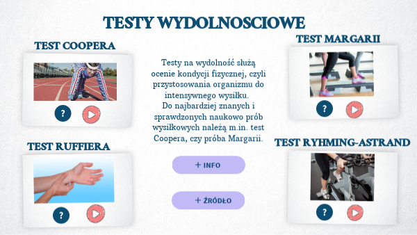 Testy na wydolność służą ocenie kondycji fizycznej, czyli przystosowania organizmu do intensywnego wysiłku. Do najbardziej znanych i sprawdzonych naukowo prób wysiłkowych należą m.in. test Coopera, czy próba Margarii.