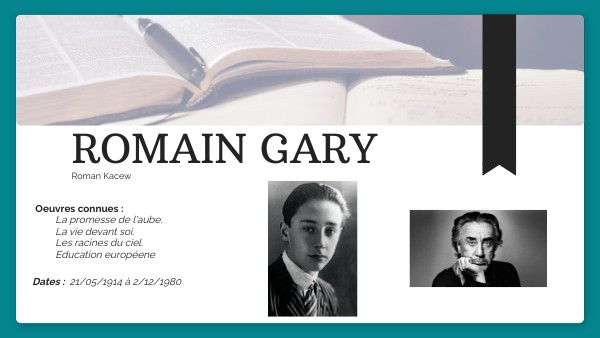 Oeuvres connues : La promesse de l'aube. La vie devant soi. Les racines du ciel. Education européene