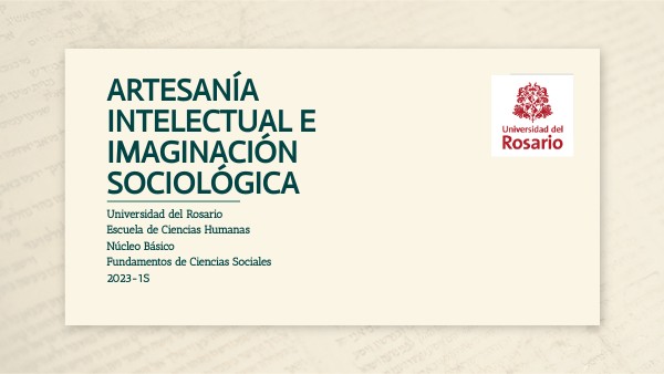 Universidad del Rosario Escuela de Ciencias Humanas Núcleo Básico Fundamentos de Ciencias Sociales 2023-1S