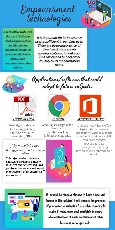 it is important for its innovative uses is sufficient in our daily lives. There are three importance of E-tech and these are for communications, to make our lives eaiser, and to help other country to its modernization plans.