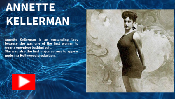 Annette Kellerman is an oustanding lady because she was one of the first women to wear a one-piece bathing suit. She was also the first major actress to appear nude in a Hollywood production.