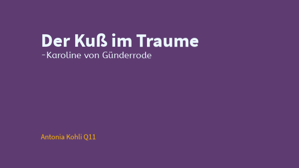 - Inhalt: - Situationsbeschreibung : - > besonders positives Erlebnis - > tiefste Sehnsucht nach diesem Ereignis "gestilltet meines Busens tiefstes Schmachten" - es geschah in der Nacht "Weil nur die Nacht so süßen Balsam haucht" - > Dunkelheit soll wiederkommen, damit sich Erlebnis wiederholt - > Das Erlebnis passierte nur in der Vorstellung "Der Kuß im Traume" - erinnert sich am Ende selbst nochmal daran die Nacht wertzuschätzen "Hüll' dich in Nacht, sie stillet dein Verlangen"