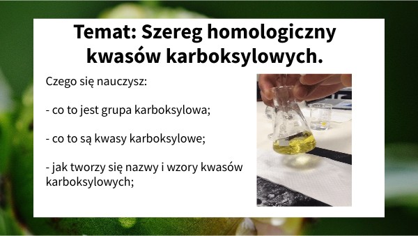 Temat: Szereg homologiczny kwasów karboksylowych.